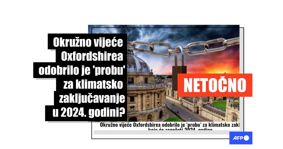 "Okružno vijeće Oxfordshirea odobrilo je 'probu' za klimatsko zaključavanje koje će započeti 2024. godine", piše u naslovu članka objavljenog 9. prosinca 2022. godine. Tvrdi se kako se radi o programu pod nazivom "15-minutnog grada" koji bi uključio postavljanje "elektroničkih vrata na ključne ceste na ulazima i izlazima iz grada, ograničavajući stanovnike na vlastita susjedstva."