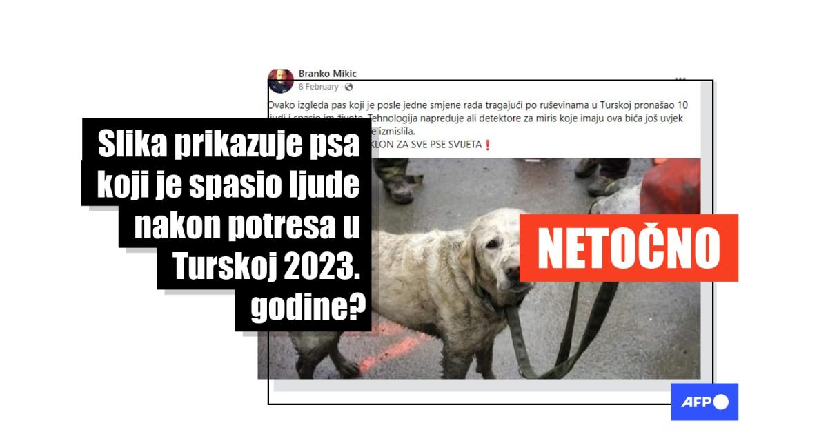 AFP je već razotkrio postove sa sličnom fotografijom psa podijeljenom uz tvrdnju da je snimljena u Turskoj 2023. godine. Fotografija je zapravo snimljena kao ilustracija 2018. godine i postavljena na specijaliziranim internetskim stranicama za ilustrativne fotografije.