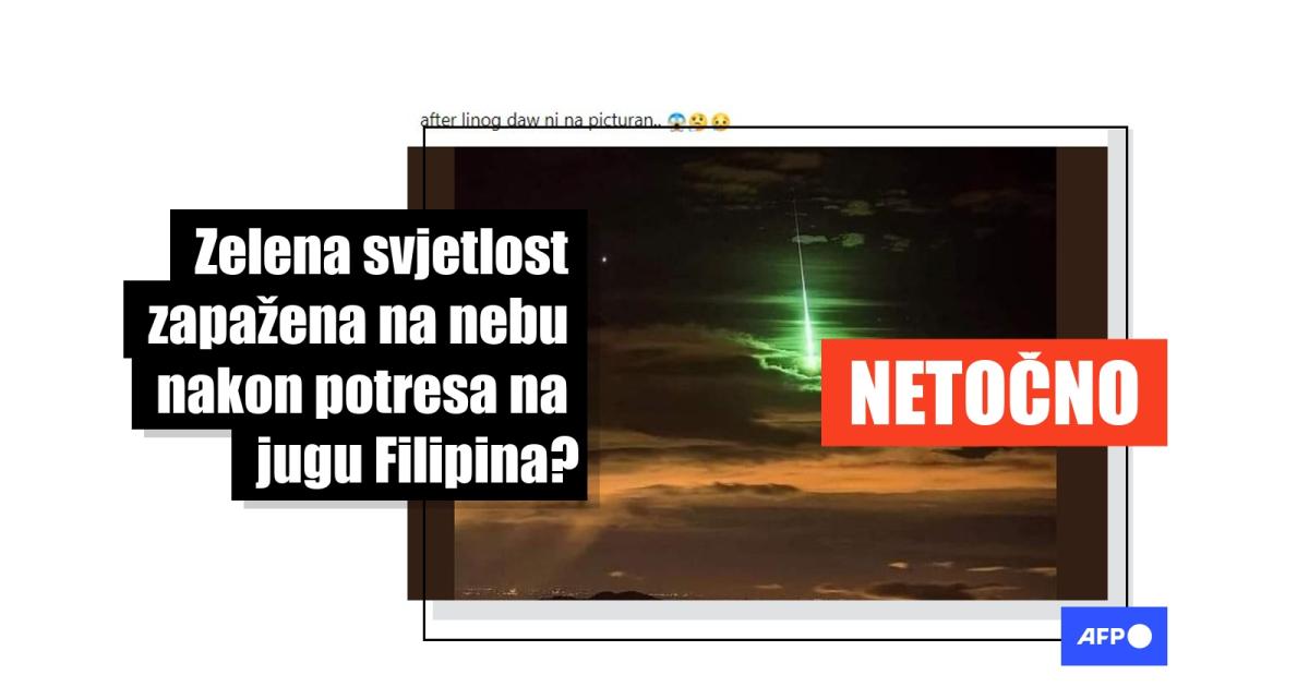 Fotografija - koja prikazuje zeleno svjetlo na noćnom nebu - podijeljena je nekoliko sati nakon što je snažan potres magnitude 7,6 pogodio južne Filipine 2. prosinca, a ubrzo je objavljeno i upozorenje na tsunami u obalnim područjima.