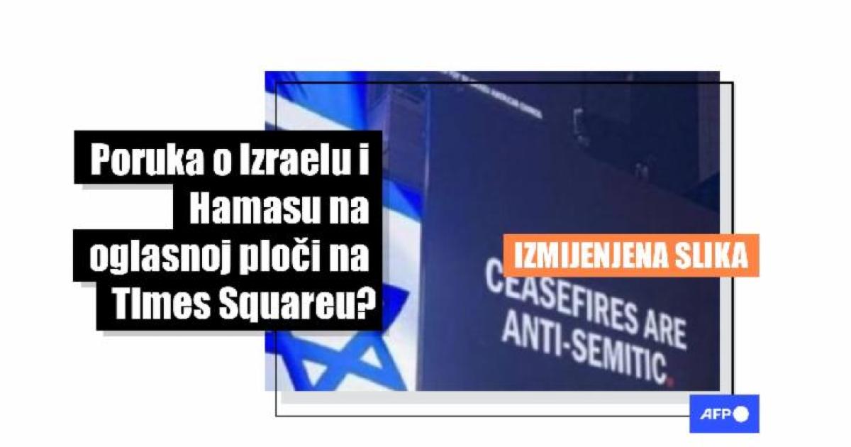 AFP je ranije raskrinkao druge manipulirane slike reklama na Times Squareu o ratu Izraela i Hamasa i ruskoj invaziji na Ukrajinu.