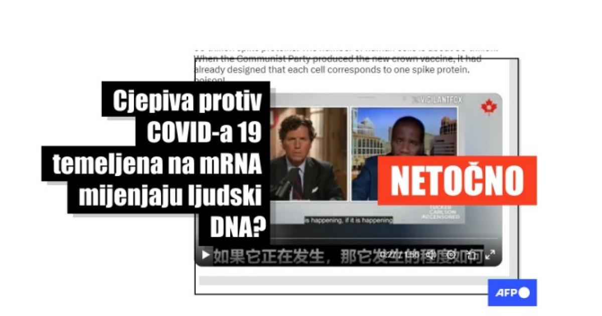 Carlson je pitao Ladapa je li "moguće da mRNA cjepiva mogu izmijeniti DNA ljudi," na što je ovaj odgovorio: "Apsolutno je moguće. To je neupitno." Ovaj navod iz intervjua objavljen je i na Facebooku na hrvatskom 15. siječnja 2024. Slične netočne tvrdnje širile su se na platformi X ovdje i ovdje, i na Facebooku ovdje.