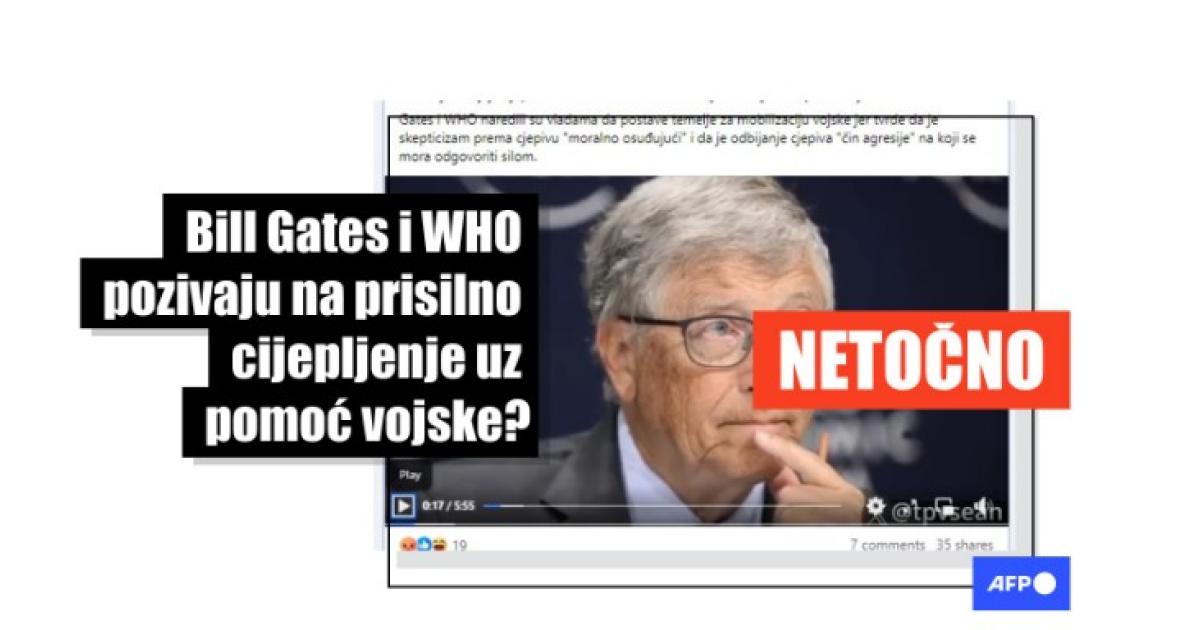 Intervju izvađen iz konteksta predstavljen je kao dokaz da Gates i WHO naređuju vojskama prisilno cijepljenje