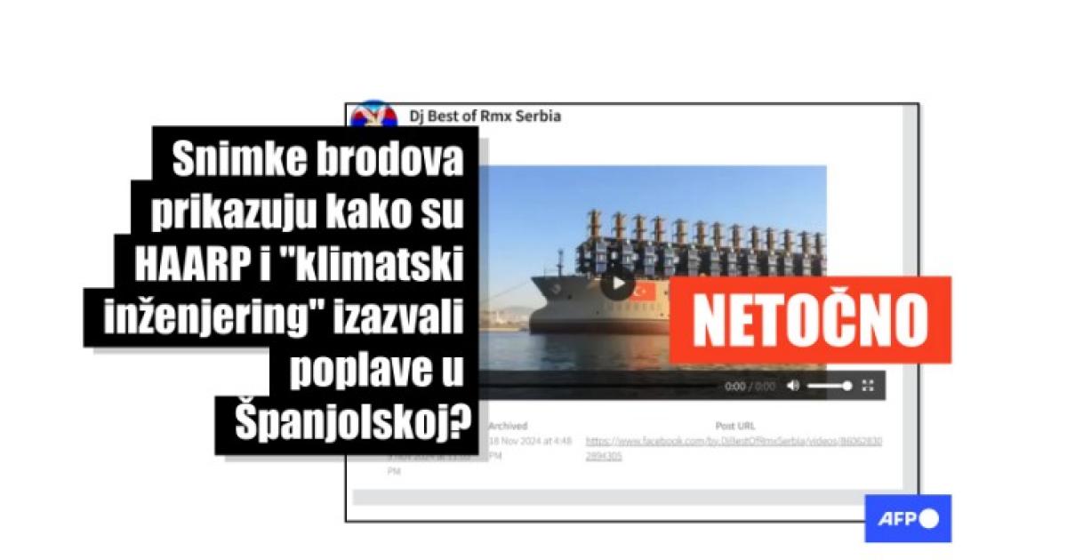 Nijedna od snimki brodova nije snimljena u blizini Valencije neposredno prije poplava. Prvi brod je već godinama u vodama Gane, dok je drugi primijećen s otoka Gran Canaria, oko 2.000 kilometara udaljenog od Valencije. Snimke koje navodno prikazuju sumnjive tragove na nebu zapravo su snimljene u Čileu i Kini. HAARP je često meta teorija zavjere koje se ponekad miješaju s tvrdnjama o takozvanim "chemtrailsima" nakon prirodnih katastrofa. Znanstvenici su više puta izjavili za AFP da tehnologija koju koristi taj istraživački projekt ne može izazvati poplave, kišu, potrese ili ikakvu drugu prirodnu katastrofu.