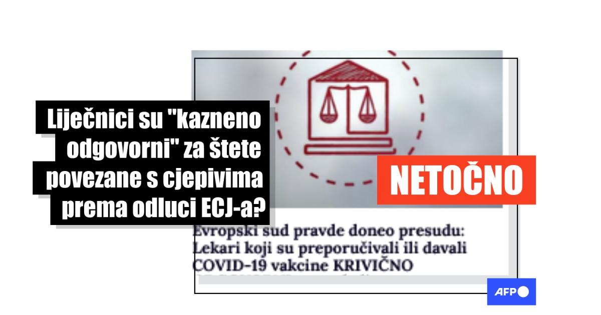 Godinama nakon vrhunca pandemije COVID-a 19 na društvenim mrežama i dalje su se dijelile netočne tvrdnje usmjerene na liječnike koji su davali cjepiva. U objavama iz travnja 2025. netočno se navodi da je najviši sud Europske unije presudio da su zdravstveni radnici "kazneno odgovorni" za sve loše ishode nakon cijepljenja protiv COVID-a 19. Međutim, stručnjaci za medicinsko pravo potvrdili su AFP-u da takve presude nije bilo. Iako je svaki slučaj jedinstven, stručnjaci su naveli da se tvrdnje o povredama izazvanim cjepivom mogu podnijeti protiv proizvođača, dok liječnici mogu biti odgovorni u slučajevima nemarnog postupanja ili medicinske greške, ali ne zbog davanja odobrenog cjepiva.