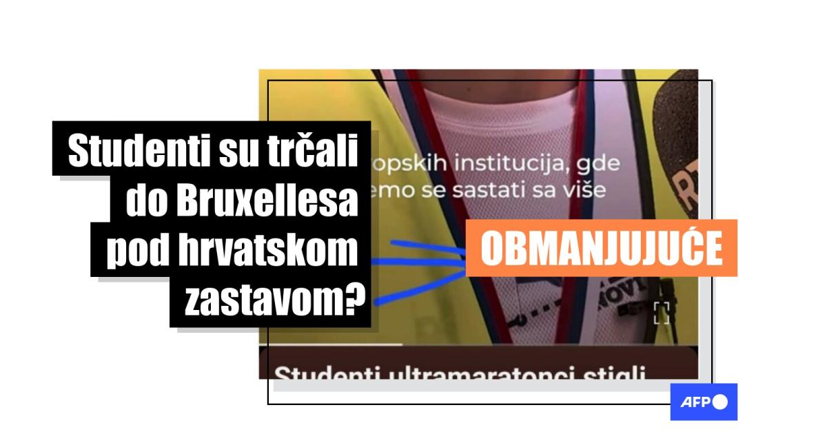 "SKANDALOZNO: Srpski studenti trčali u Briselu pod hrvatskom zastavom!" piše u naslovu članka objavljenog na stranici Vaseljenska 19. svibnja 2025. Tekst sadrži snimku zaslona video izvještaja Al-Jazeere o dolasku srpskih studenata u Bruxelles 12. svibnja, konačno odredište štafetnog ultramaratona od Srbije do institucija EU, organiziranog kao dio višemjesečnih studentskih prosvjeda kako bi se skrenula pažnja EU-a na događaje u Srbiji (arhivirano je ovdje i ovdje).