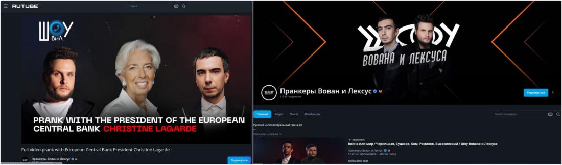 U snimci s Lagarde, jedan od dvojice komičara predstavljao se kao ukrajinski predsjednik Volodimir Zelenski i postavljao je predsjednici ESB-a pitanja o raznim temama, uključujući uvođenje digitalnog eura.