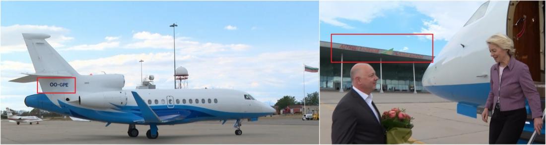 Na snimci koju je bugarska vlada objavila vidi se avion s istim brojem na repu (OO-GPE) kako se kreće pistom zračne luke u Plovdivu. Vidi se i kako von der Leyen izlazi iz aviona.
