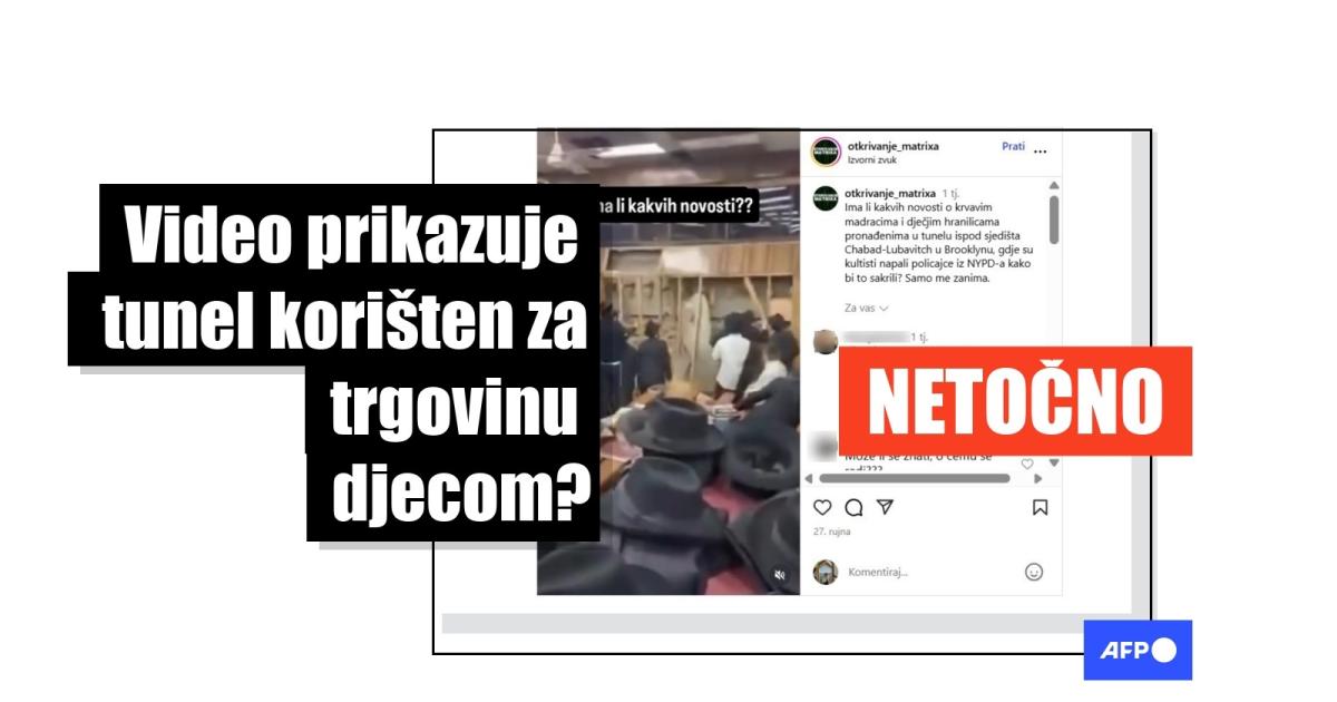 Policijski službenici New Yorka priveli su u siječnju 2024. godine devet osoba nakon što su otkrili neovlašteni tunel ispod brooklinske sinagoge. Više od godinu dana kasnije, na društvenim mrežama na hrvatskom počele su kružiti snimke na kojima se vidi kako skupina ljudi probija zidove, uz tvrdnju da prikazuju taj tunel i da su u njemu pronađeni krvavi madraci i dječje hranilice. Korisnici su u komentarima to tumačili kao dokaz da je tunel korišten za trgovinu djecom. Međutim, policijski i gradski dužnosnici, te izvještaji sa mjesta događaja, potvrđuju da je tunel bio prazan. Sam tunel, prema riječima uključenih studenata, prokopan je radi duhovne misije.