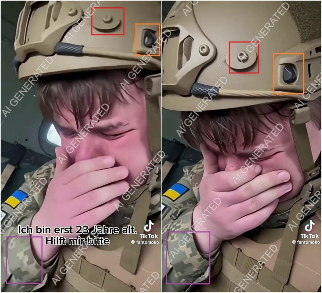 Od početka ruske invazije na Ukrajinu 24. veljače 2022. godine u zemlji se vodi žustra rasprava o mobilizaciji ukrajinskih oružanih snaga. Video koji prikazuje mladića od 23 godine koji plače i koji je navodno bio pozvan u vojsku postao je viralan na internetu početkom studenog 2025. godine. Međutim, snimka nije autentična. AFP je otkrio nekoliko tragova korištenja umjetne inteligencije pri njezinom stvaranju, što su potvrdili i alati za otkrivanje sadržaja generiranog AI-jem. Osim toga, navodna dob vojnika ne odgovara dobi za mobilizaciju u Ukrajini.