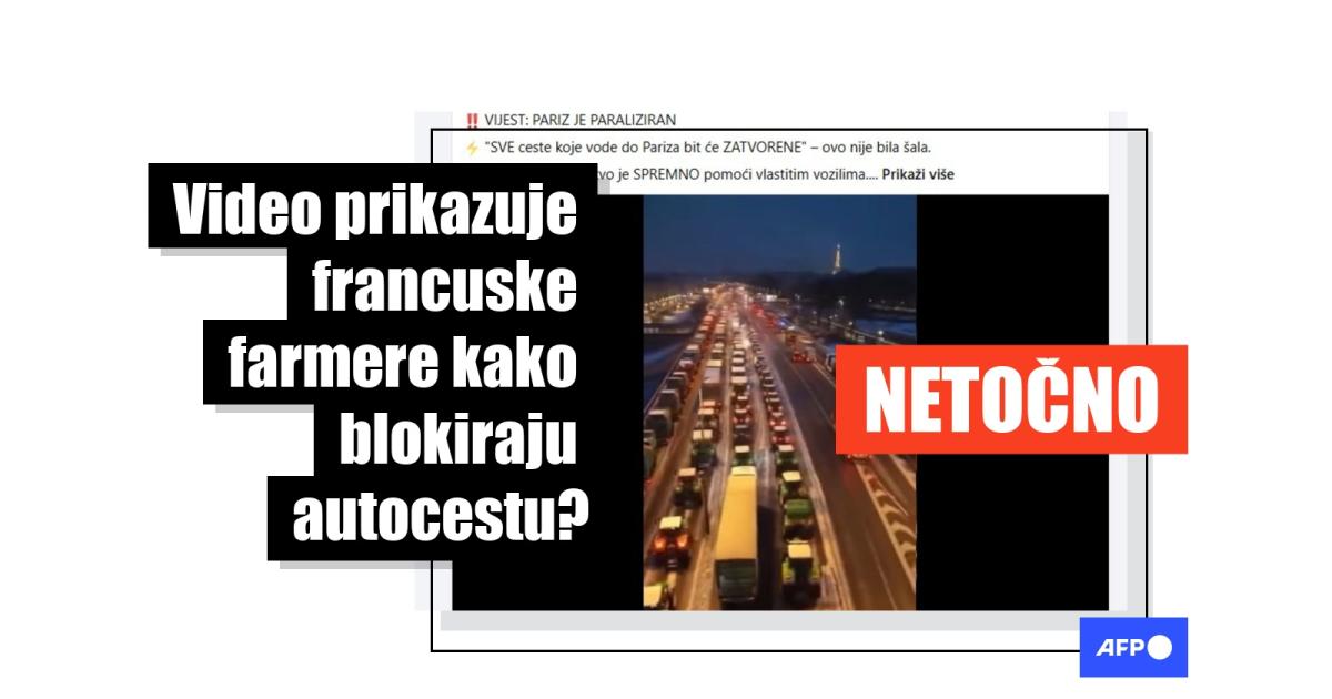 Od početka siječnja 2026. godine, francuski poljoprivrednici organizirali su brojne prosvjede, kako bi izrazili protivljenje trgovinskom sporazumu između Europske unije i četiri južnoameričke zemlje. Sporazum je viđen kao kap koja je prelila čašu usred šireg nezadovoljstva. U tom kontekstu, na društvenim mrežama dijeli se video koji navodno prikazuje traktore na autocesti u blizini Pariza. Međutim, na temelju više vizualnih neslaganja i provjere s pomoću alata za otkrivanje zvuka umjetnom inteligencijom AFP je utvrdio da snimka nije autentična. Također, nisu pronađeni pouzdani medijski izvještaji o takvom incidentu na taj određeni datum.