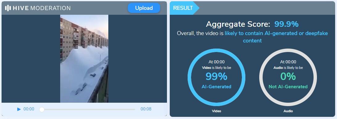 Prema Hive Moderation, oba imaju 99 % vjerojatnost da su generirana umjetnom inteligencijom.
