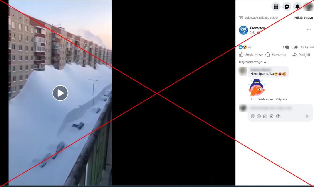"...Ovoga puta u Rusiji odakle stižu nevjerojatni prizori, snježni nanosi dosežu 8. kat zgrada. Kamčatka Rusija - 16. siječnja 2026," piše u opisu objave na Facebooku. Ispod objave mogu se pročitati komentari korisnika koji se nadaju da takvo vrijeme neće doći u Hrvatsku: "Neka tamo i ostane, to nama netreba...ja vjerujem samo vama i onome što više napišete."