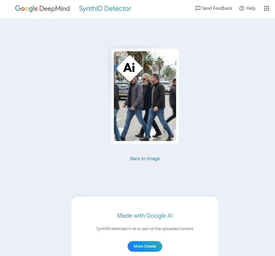 Obrnuta pretraga slika provedena od strane AFP-a za navedeni vizual također je dala rezultat koji navodi da je "napravljeno s pomoću Google AI", a Gemini je detektirao SynthID — nevidljivu vodenu oznaku za koju Google kaže da služi za identifikaciju AI sadržaja stvorenog s pomoću njegovih alata — dodana na sliku.