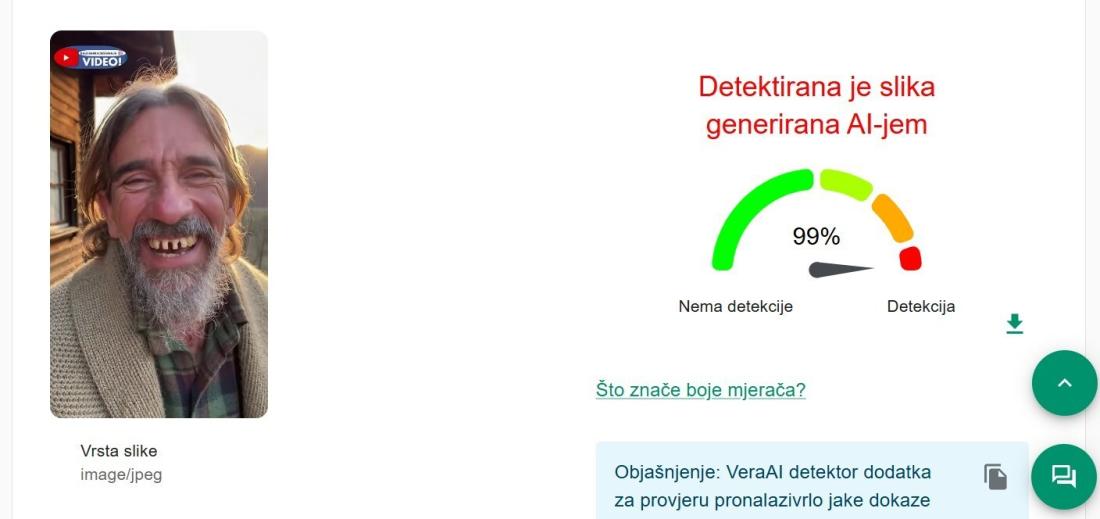 Isječak prikazuje čovjeka sa sjedom kosom i bradom kako se smije. Čovjekovi zubi na slici ne djeluju prirodno, što ukazuje na to da nije autentična. AFP je analizirao isječak s pomoću alata InVID-WeVerify te utvrdio da je riječ o slici generiranoj uz pomoć umjetne inteligencije.